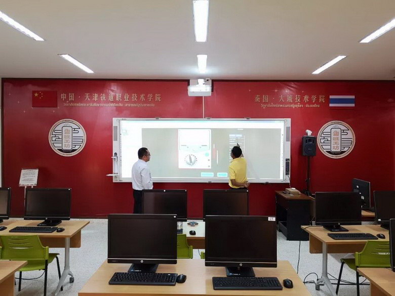 魯班工坊是在教育部指導下,天津市首創(chuàng)并率先主導推動實施的職業(yè)教育國際品牌,已經(jīng)跟隨“一帶一路”去世界各地,153寸雙通道超寬屏白板一體機+PROPIX派克斯超短焦激光投影機也代表中國優(yōu)秀職教成果走向了世界。