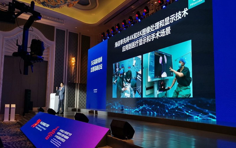 “5G時代,讓們看到了顯示無處不在的機會!庇谥硎荆趪@著5G相關(guān)的10大核心產(chǎn)業(yè)和5大核心服務(wù)中,海信憑借多年積累的顯示技術(shù),實施了全國首個5G技術(shù)賦能的智慧街區(qū)、率先將4K和8K圖像處理和顯示技術(shù)應(yīng)用到顯示和手術(shù)場景。