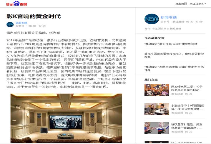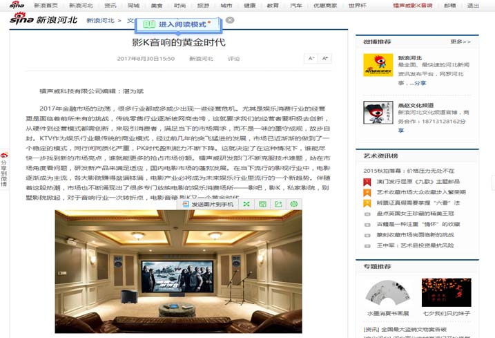最近一段時間,影K.影吧的話題很熱。各大媒體紛紛報道,由于KTV行業(yè)的發(fā)展進入高度競爭時期,從前年開始就已經(jīng)有老板開始投資微影吧,去年也有非常多的人投資做影吧,進入到今年下半年,越來越多的投資人開始關(guān)注投人影K.影吧,或是新開、或是轉(zhuǎn)型、或是融合?粗Ч麑映霾桓F的影吧,影吧旳確一直效益不錯,微影吧開業(yè)生意很火,鐳聲威推薦衛(wèi)星音響影吧系統(tǒng),給投資影吧老板們大大將低設(shè)備成本,提高微影利潤空間,工程商安裝也方便。提高工作效率。還有一部分需求是唱歌加看電影也叫影K,影K市場越來越多受到關(guān)注,鐳聲威影K,影吧受到媒體高度關(guān)注,有百度新聞,新浪新聞,搜狐新聞,中訊網(wǎng)等等.........