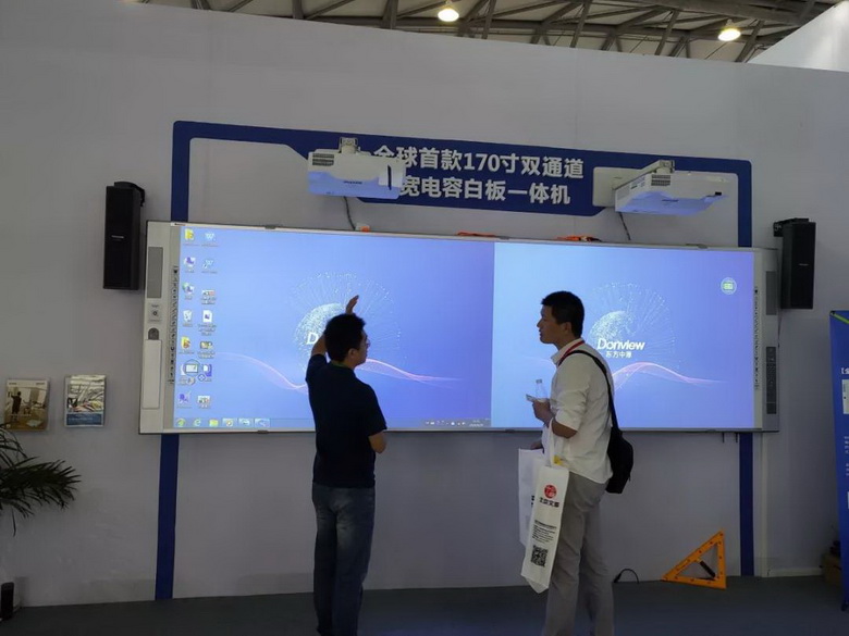 此次展會(huì)東方中原帶來(lái)了全球首款170寸雙通道超寬電容白板一體機(jī),它目前是全球首款最大的雙通道電容白板一體機(jī)解決方案。