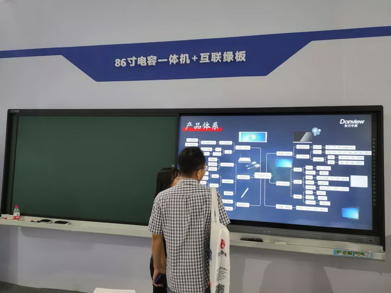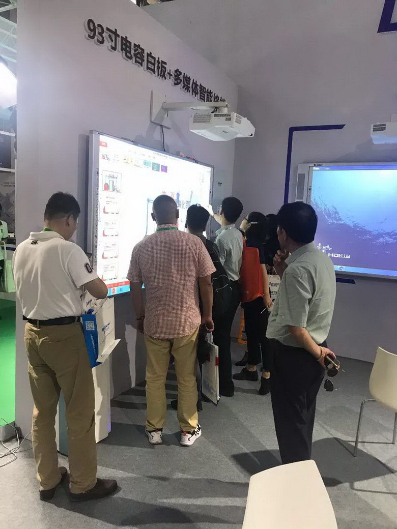 針對(duì)不同的教學(xué)需求,東方中原也有不同的解決方案,此次展出98寸單側(cè)配搪瓷綠板紅外線一體機(jī)方案、93寸電容白板+多媒體智能終端方案和86寸電容一體機(jī)+互聯(lián)綠板方案,既能滿足傳統(tǒng)教學(xué)需求也能進(jìn)行多媒體教學(xué)。