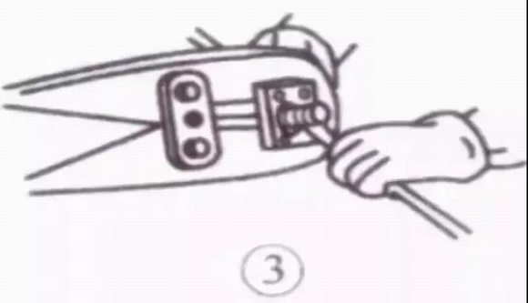 把余下的3根芯線按步驟⑤ 方法纏繞至第2圈時(shí),把前4根芯線在根部分別切斷,并鉗平;接著把3根芯線纏足3圈,然后剪去余端,鉗平切口不留毛刺