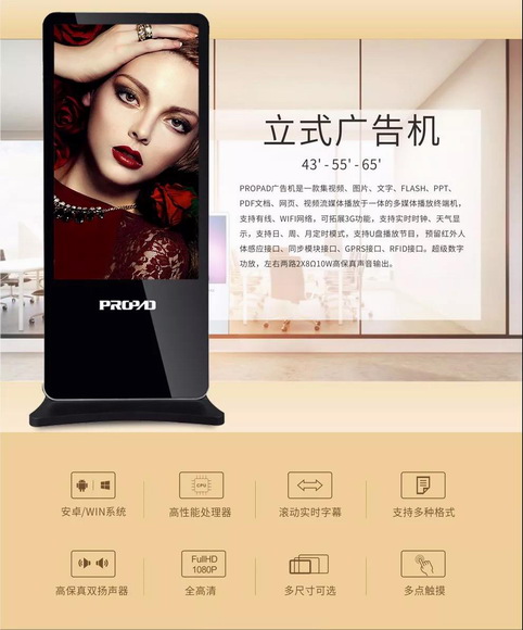 深圳市億特朗科技有限自成立以來,專心致力于液晶產(chǎn)品、觸摸應用以及各種商用顯示屏的技術應用的研發(fā)與推廣工作,特別在液晶顯示領域,公司現(xiàn)已形成以“PROPAD”為品牌。“PROPAD”智能廣告機品類多樣,款式新穎,亦可根據(jù)場景需求,支持私人訂制。