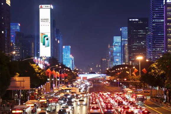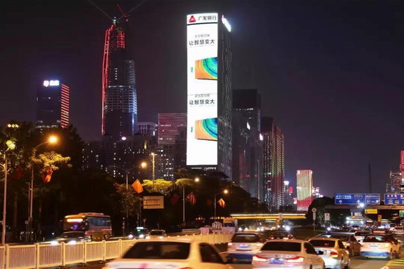 戰(zhàn)場(chǎng)外,華為更是不惜重金投放在各大城市的戶外地標(biāo)屏。15城地標(biāo)聯(lián)動(dòng)的場(chǎng)景牢牢抓住消費(fèi)者的眼球,被網(wǎng)友戲稱為"千億營(yíng)銷"