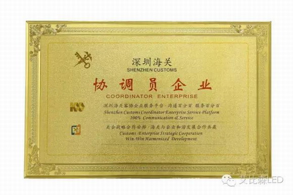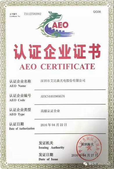 2015年艾比森獲得了深圳海關協(xié)調員企業(yè)和中國外貿出口先導指數(shù)(ELI)樣本企業(yè)等殊榮。2016年4月27日,艾比森正式成為了行業(yè)首家AEO高級認證企業(yè)。