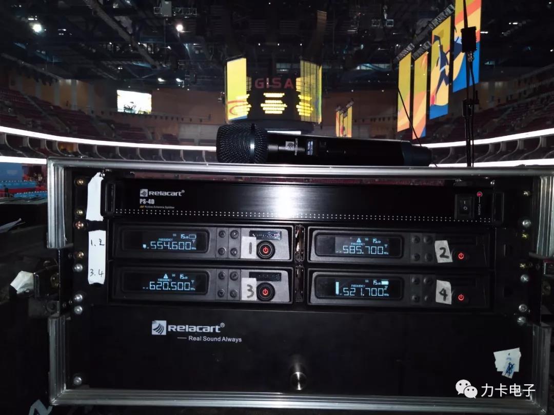 ▲比賽現(xiàn)場(chǎng)使用力卡P1單通道真分集無(wú)線麥克風(fēng)系統(tǒng),HR-31S UHF 單通道真分集無(wú)線麥克風(fēng)系統(tǒng)搭配天線放大系統(tǒng)