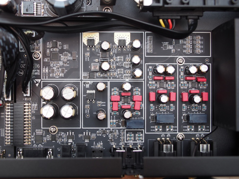 這次Q50由于采用了雙硬盤倉和線電,數(shù)字和模擬部分分開的PCB設(shè)計(jì),讓其機(jī)箱內(nèi)看起來還是滿滿的,沒有出現(xiàn)大大的機(jī)箱空蕩的內(nèi)容的問題。開博爾