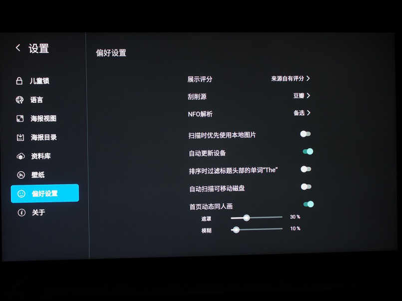 海報(bào)墻功能也比較多,可設(shè)置選項(xiàng)也不少,這里還是挑重點(diǎn)的說,主要是搜刮源和評(píng)分系統(tǒng)的選擇,Q50上支持國(guó)內(nèi)的豆瓣和國(guó)外的IMDB 2個(gè)系統(tǒng)的評(píng)分源,搜刮源也是支持豆瓣和TMDB,常規(guī)來說,我們?cè)谙螺d的時(shí)候基本上都是參考IMDB的評(píng)分,但在國(guó)內(nèi)用有個(gè)問題就是速度,搜刮后下載海報(bào)和劇情圖非常慢,我個(gè)人更喜歡直接用豆瓣,速度快很多,而且識(shí)別成功率也很高。