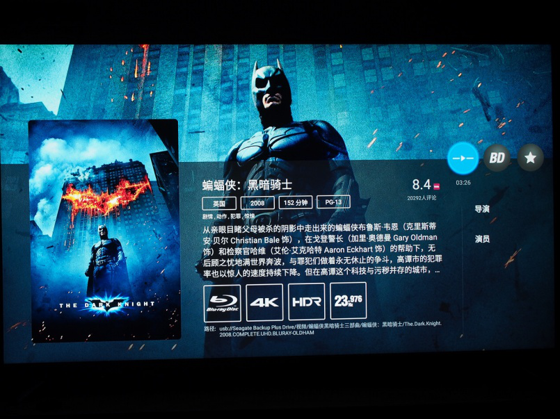 播放操控菜單,選擇字幕,音軌等調(diào)節(jié)都比較方便,其實(shí)相對(duì)于藍(lán)光機(jī)我個(gè)人覺得最方便的就是拖動(dòng),前進(jìn)后退直接用遙控器前后拖動(dòng)就可以了,而藍(lán)光機(jī)則只能調(diào)出播放時(shí)間菜單進(jìn)行跳轉(zhuǎn)。