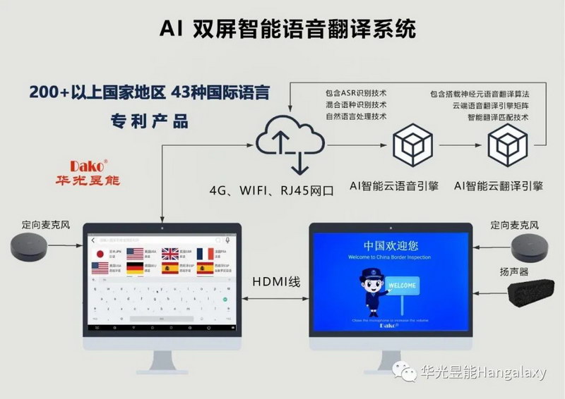 華光昱能Dako品牌的專利產品——AI智能語音翻譯機,200多個國家43種國際語言,基于云端的多引擎、多接口的商務辦公專用翻譯機。歡迎垂詢、定制。