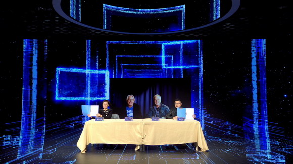 會上德火科技通過虛擬與現(xiàn)實技術(shù),與靈山科技及跨時空而來的美國知名制作公司Stargate、General Lift,進行了一場橫跨時間與空間的戰(zhàn)略簽約,作為新技術(shù)的試驗場,這次簽約儀式對現(xiàn)場見證者來說具有劃時代的意義,這無疑也是影視拍攝技術(shù)上新的發(fā)展與變革。