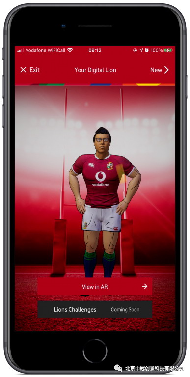 沃達(dá)豐和英國獅隊推出官方旅行應(yīng)用,讓粉絲有機(jī)會在手機(jī)上“成為一只雄獅”。用戶可在手機(jī)應(yīng)用上創(chuàng)建AR虛擬獅隊隊員,在3D增強(qiáng)現(xiàn)實(shí)中為個性化的虛擬形象選擇一系列動作,如在客廳中走路、跑步、躲閃和慶祝。