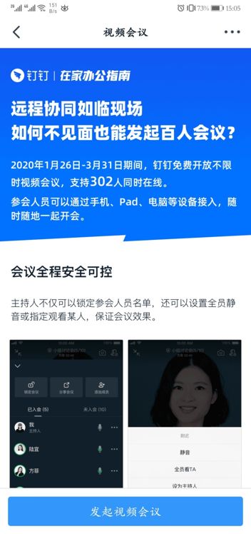 對(duì)比微信、QQ自帶的視頻通話功能,釘釘最明顯的優(yōu)勢是高達(dá)302人的參會(huì)人數(shù),疫情期間免費(fèi)開放使用,開會(huì)人數(shù)上已經(jīng)輕松吊打微信QQ,完全能滿足大型企業(yè)的百人視頻會(huì)議需求,并且支持視頻會(huì)議主持人功能,可以實(shí)現(xiàn)進(jìn)行簡單的會(huì)議管理。