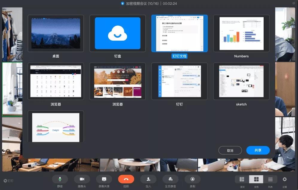 然后是遠(yuǎn)程會(huì)議最重要的功能——屏幕共享。釘釘?shù)碾娔X端依然支持共享當(dāng)前屏幕的功能,在這個(gè)基礎(chǔ)上拓展出更進(jìn)一步的功能——指定分享已打開的某個(gè)窗口。