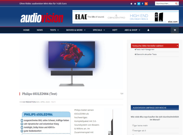 波蘭科技報紙《Komputer》用兩版篇幅對飛利浦OLED934進行了極為詳盡的測評,稱其為“值得期待”的視聽產(chǎn)品。有著世界知名奢侈品音響寶華韋健B&W賦能的OLED934,不但畫質表現(xiàn)和全面功能令其折服,真實自然的音質表現(xiàn)更是收獲盛贊,在杜比技術的配合下,OLED934的視聽效果令人震撼。
