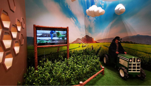 ⑤VR農(nóng)場(chǎng)——通過(guò)仿真花草道具搭建了一個(gè)農(nóng)場(chǎng)場(chǎng)景,同時(shí)還放了一臺(tái)拖拉 機(jī)仿真模型,模型上搭載了一套VR裝備,顧客可以坐在拖拉機(jī)上,戴上VR眼鏡,體驗(yàn)安利紐崔萊農(nóng)場(chǎng)風(fēng)光,更加真實(shí)的認(rèn)識(shí)安利產(chǎn)品制作工藝流程;