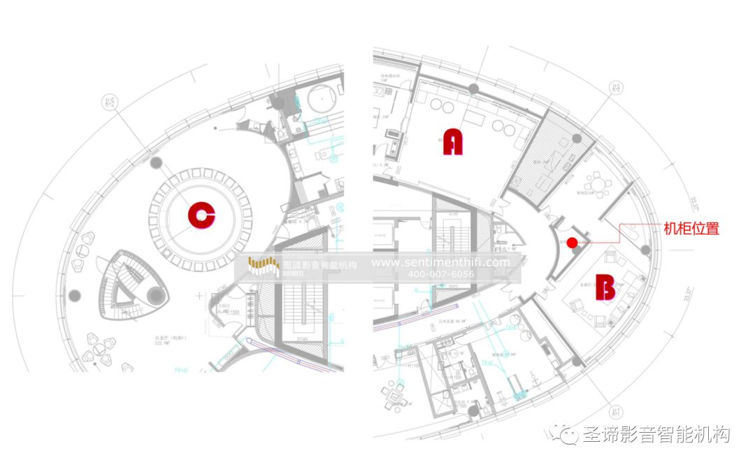 因此綜合多方因素考慮,圣諦對(duì)這兩個(gè)區(qū)域采用可移動(dòng)的卡拉OK揚(yáng)聲器系統(tǒng)設(shè)計(jì),并通過墻面接口面板達(dá)成實(shí)現(xiàn)B/C區(qū)域通用的要求。