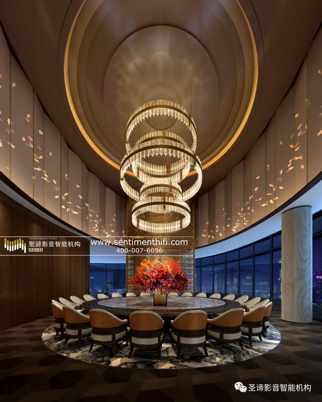 這一空間為多場(chǎng)景應(yīng)用區(qū)域,有辦派對(duì)唱卡拉OK的應(yīng)用需求、有觀看足球比賽的應(yīng)用需求、有時(shí)會(huì)布置為進(jìn)行樂器表演的演藝廳,這一區(qū)域?qū)臻g綜合音效的表現(xiàn)要求頗高,需要同時(shí)滿足多場(chǎng)景需求下的功能應(yīng)用。