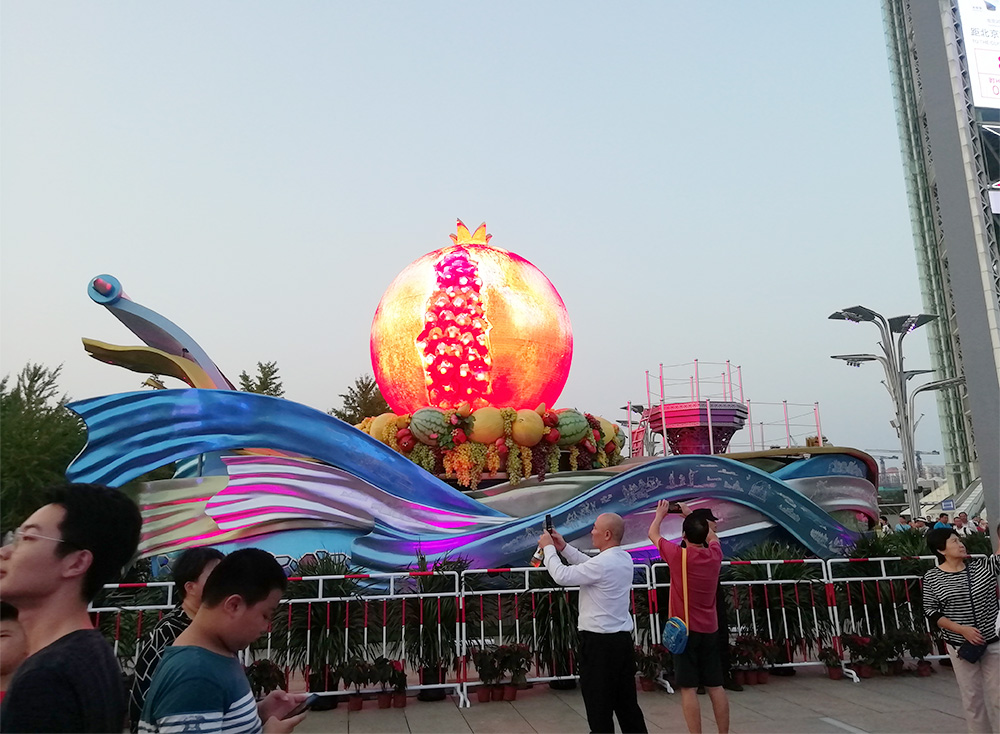 “石榴紅了”大型主題雕塑作為“美麗新疆”彩車的核心組成部分,主體元素為“石榴”, 象征著瓜果之鄉(xiāng)的新疆兩千五百萬(wàn)各族兒女,像石榴籽一樣緊緊地抱在一起。“美麗新疆”彩車受得到中央、自治區(qū)領(lǐng)導(dǎo)的充分肯定和社會(huì)各界的廣泛贊譽(yù),被北京慶祝大會(huì)服務(wù)保障和群眾游行指揮部授予國(guó)慶70周年群眾游行地方彩車“華美獎(jiǎng)”,更是被網(wǎng)紅們親切地稱為“甜甜的大石榴”“中國(guó)最美石榴”。