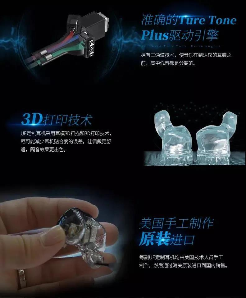 UE定制耳機采用耳模3D掃描和3D打印技術,盡可能減少耳機貼合度的誤差,讓佩戴者更舒適,隔音更出色。
