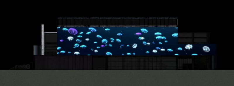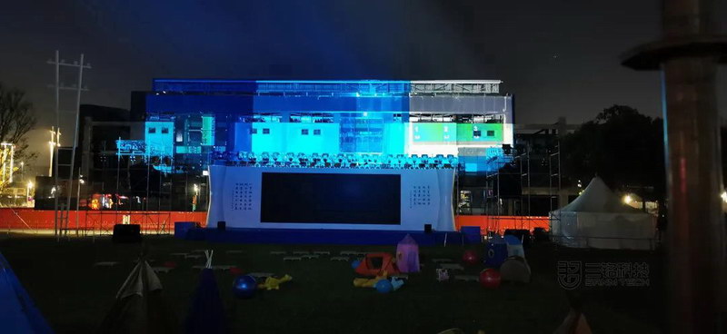 31000流明高清工程投影機(jī)將表演舞臺(tái)背后的墻面作為展示屏。45米X10米的超大尺寸展示,運(yùn)用不一樣的藝術(shù)動(dòng)態(tài)展示,產(chǎn)生了超乎想象的震撼效果,是充滿(mǎn)想象力的影像與建筑物搭配的完美結(jié)合。