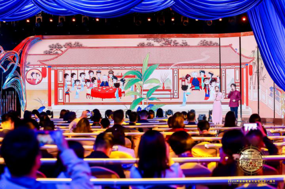 在經(jīng)典作品展演環(huán)節(jié),《凱叔紅樓夢(mèng)》被北京廣播電視臺(tái)推選為重點(diǎn)作品亮相,現(xiàn)場(chǎng)邀請(qǐng)到寶玉、黛玉的配音演員楊天翔、周侗,配合3D長(zhǎng)卷畫(huà)軸,演繹了【寶黛初見(jiàn)】經(jīng)典片段,將現(xiàn)場(chǎng)觀(guān)眾帶進(jìn)紅樓的精彩情景中。