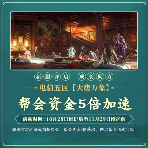 隨著“北天藥宗”海量更新內(nèi)容的到來,全新王者爭霸服【大唐萬象】也將在今日于電信五區(qū)同步開放!本次爭霸服總結(jié)過往PVP搞事服過于封閉、物資匱乏、經(jīng)濟難以循環(huán)的經(jīng)驗,在完全正式服的開放環(huán)境中加入定制化的新手期設(shè)定,為新服開啟沖刺活動,助力有志俠士重燃熱血,快速提升幫會等級!