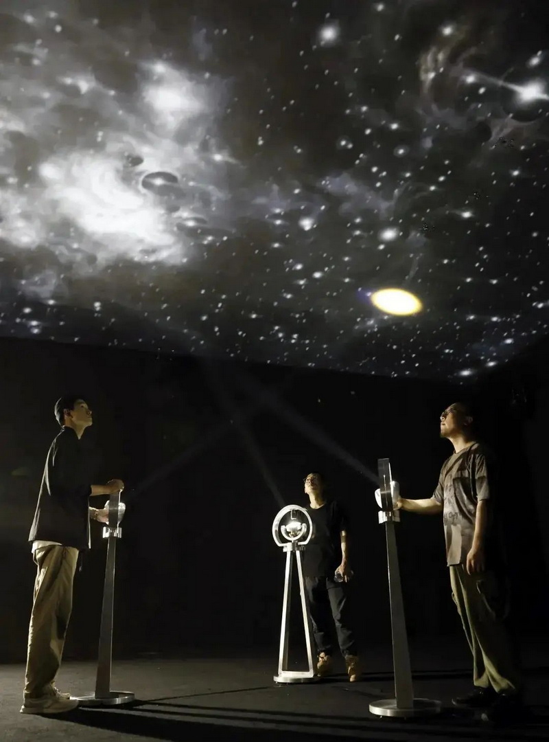 觀者通過操縱光控互動(dòng)形式,搜尋暗藏于空間(宇宙星云)中的聲音,光點(diǎn)所尋之處將呈現(xiàn)由著名戲劇演創(chuàng)人員錄制的經(jīng)典戲劇獨(dú)白。將時(shí)間與空間、經(jīng)典與當(dāng)下、公眾與演創(chuàng)人員置于同一維度:現(xiàn)實(shí)生活的戲劇時(shí)空,是謂剎那即永恒。