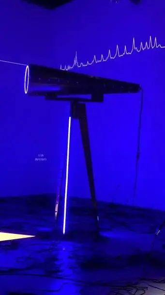 利用光去反應(yīng)不同的時(shí)間的,既是對(duì)時(shí)間不同方式的呈現(xiàn),也是對(duì)于時(shí)間的一種記錄,一種度量。收集的每一個(gè)老舊表芯時(shí)間不一樣,運(yùn)動(dòng)速度不一樣,小燈閃爍也就不一樣。每個(gè)時(shí)間不同的機(jī)械表芯旋轉(zhuǎn)著打擊頭上的燈,創(chuàng)造一個(gè)無思考無意義的陣型,只是經(jīng)歷計(jì)算著無思考的時(shí)間。