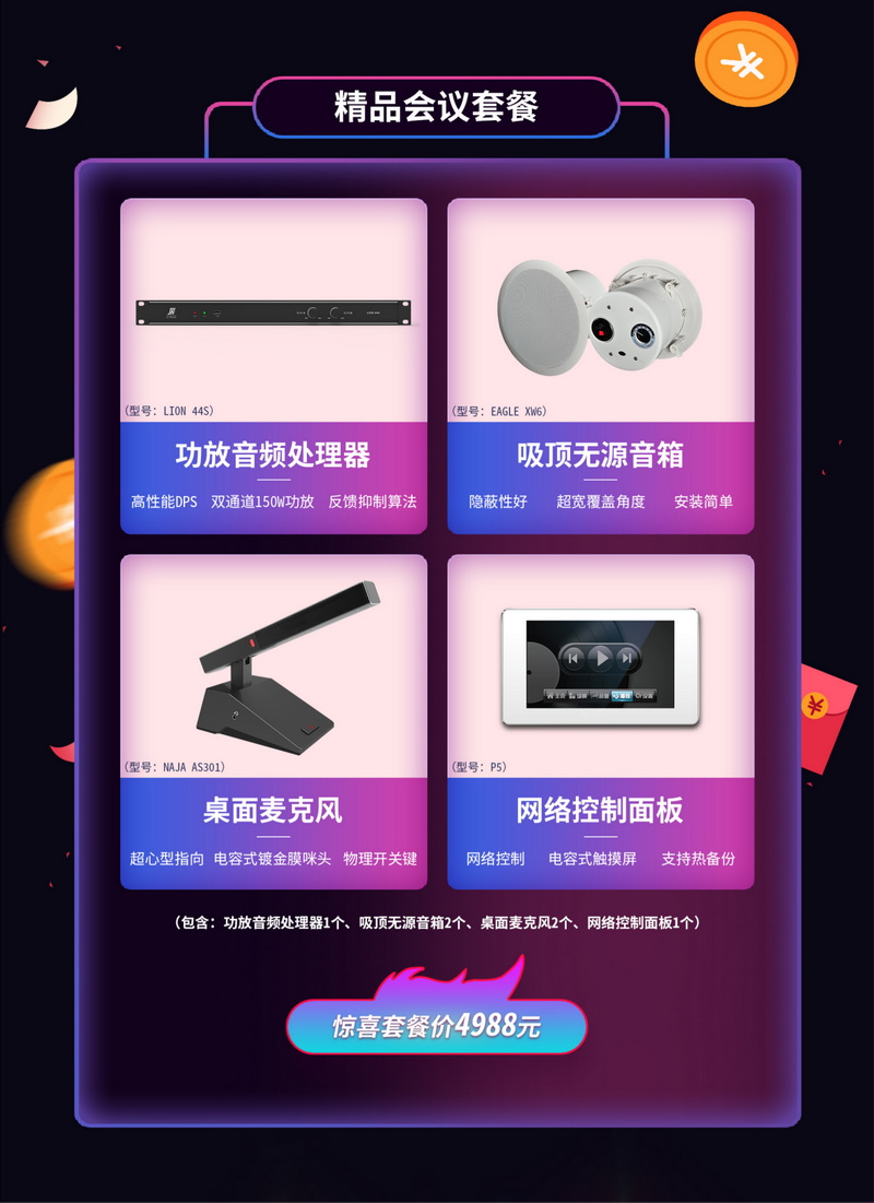 非凡品質成就高端音質,AM2300、EAGLE DY10、SSM2110三款產(chǎn)品首次冰點價。陣列麥克風拾音距離遠,效果好,搭配聲菲特音箱產(chǎn)品使用可滿足不同場景需求。