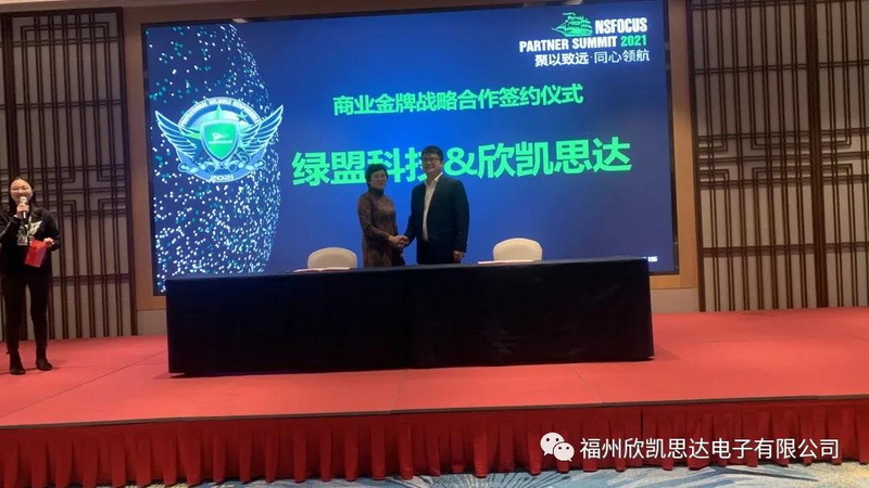 簽約儀式完成后欣凱思達(dá)將在綠盟這位成熟伙伴的支持下結(jié)合自身的市場(chǎng)的了解以及技術(shù)能力的支撐會(huì)一如既往深耕產(chǎn)品和技術(shù),與渠道、廠家伙伴們一同合作共贏。