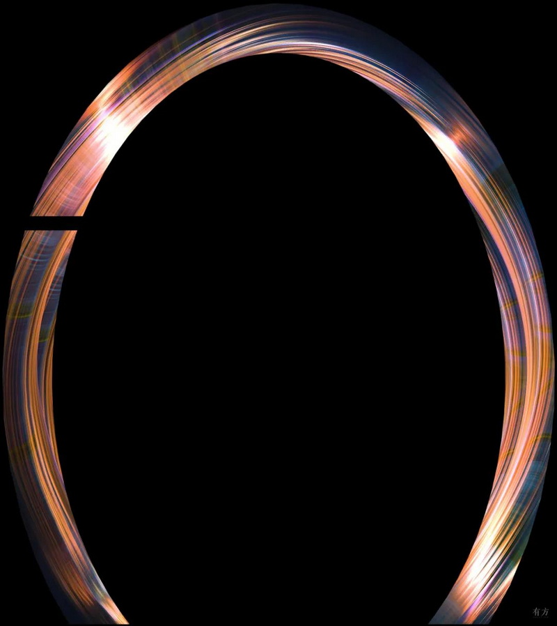 視覺團隊又在樓梯頂部放置了屏幕,在其中注入主題化的視覺內(nèi)容。屏幕被點亮的時刻,畫面被無限反射和旋轉(zhuǎn),置身其中的時間旅行者會體驗到一種短暫的扭曲時空感,預示著星際旅程的開始。