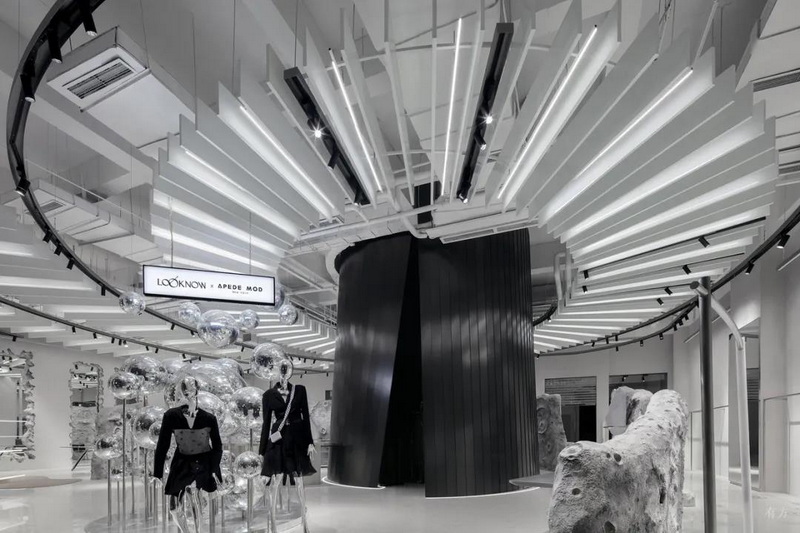 LOOKNOW是一個近幾年快速崛起的新零售品牌,倡導年輕時尚的生活方式。位于成都東大街環(huán)太古里商圈的晶融匯跨層旗艦店,是他們的西南首店,希望打通線上線下購物場景,以獨到的時尚解構(gòu)力,助推現(xiàn)象級的國際當紅設計師品牌。此次我們作為空間設計團隊,聯(lián)手視覺及裝置團隊“協(xié)作派對”,LED顯示屏設計實施團隊“恩倍思科技”和照明團隊“Lumia Lab”,共同完成了這一買手店空間的整體設計。