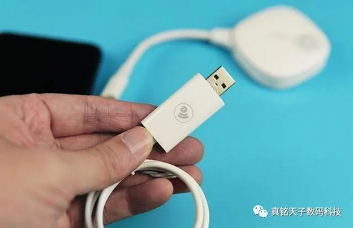 發(fā)射器部分,我們能看到它的尺寸是非常小的,這一點(diǎn)可以讓我們的桌面變得更加整潔,畢竟要是通過HDMI線連接的話,不僅拖來拖去不方便,線多了那就太難看了。