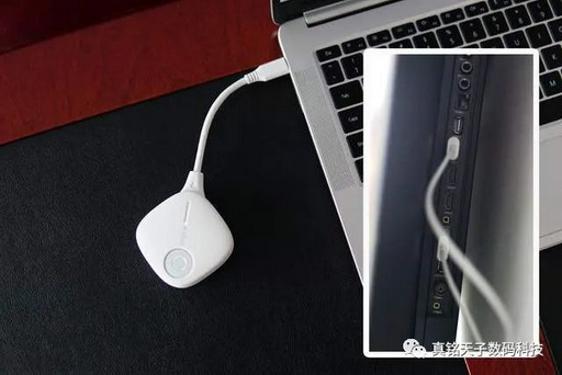 而發(fā)射器上的組成也是非常的簡(jiǎn)單,按鍵就只有一個(gè),可以實(shí)現(xiàn)啟動(dòng)/停止/重啟操作,在按鍵的下方有一個(gè)系統(tǒng)狀態(tài)指示燈,而與設(shè)備連接的接頭則是Type-C接口,Type-C接口對(duì)于目前大多數(shù)的筆記本電腦、手機(jī)來說都是支持的,所以說可以進(jìn)行投屏的設(shè)備可以有較好的覆蓋范圍。