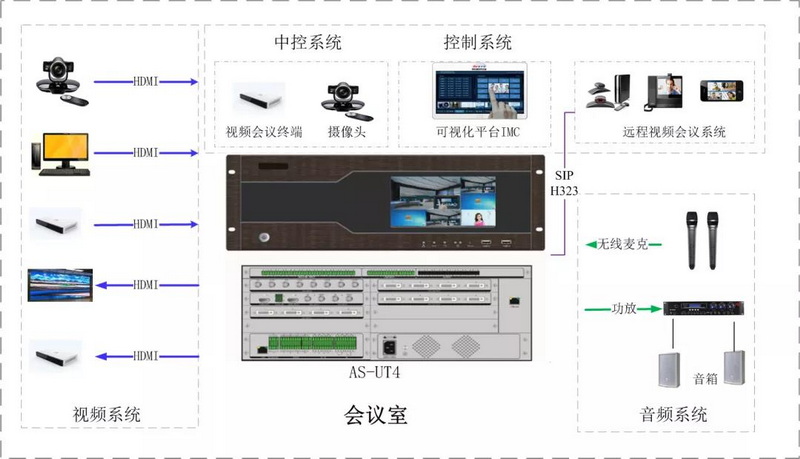 本項(xiàng)目需打造一間會議室,實(shí)現(xiàn)統(tǒng)一控制管理、音視頻調(diào)度、會議室互動等應(yīng)用,滿足提高工作效率,降低溝通成本等需求。