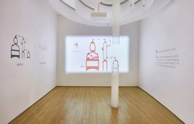 內(nèi)容交互體驗區(qū):注重探索式的體驗,由一個交互動畫,讓參觀者通過觸碰的交互方式了解香水的制作過程。
