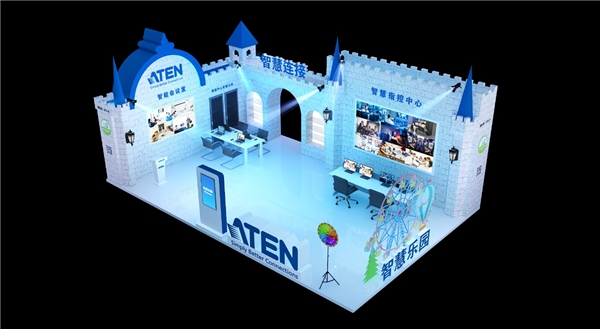 在展位入口設(shè)置了生動(dòng)的主題形象,整個(gè)展區(qū)以城堡元素為設(shè)計(jì)理念,更具未來(lái)科技信息感。同時(shí)在展區(qū)功能分區(qū)上,ATEN將智慧指控調(diào)度中心、智慧會(huì)議室、數(shù)據(jù)中心智慧運(yùn)維等區(qū)域巧妙地融入場(chǎng)景中,并在聲光電的科技運(yùn)用下,將專(zhuān)業(yè)觀眾歡快的引入“智慧樂(lè)園”中來(lái)一起體驗(yàn)、享受一場(chǎng)智慧,活潑,與眾不同的視聽(tīng)盛宴。展區(qū)設(shè)置的演講區(qū)還將帶來(lái)精彩紛呈的專(zhuān)業(yè)演講,更有靜態(tài)產(chǎn)品展區(qū)供觀眾參觀感受。整個(gè)展區(qū)設(shè)計(jì)風(fēng)格新穎,功能分區(qū)豐富,看點(diǎn)紛呈,新意十足。