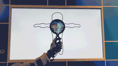 深圳華強(qiáng)北博物館,有一個(gè)互動(dòng)體驗(yàn)墻面,通過屏幕前放置的“放大鏡”移動(dòng)觀看屏幕,可以發(fā)現(xiàn)彩電、機(jī)器人、無人機(jī)等內(nèi)部結(jié)構(gòu),體驗(yàn)“從中國制造到中國制造”的魅力。