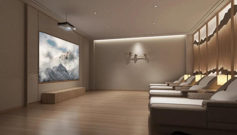 高投入的改造勢必增加酒店&民宿運營者的壓力,于是有酒店看準時機,選擇用激光投影將普通的客房升級為特色影音房,以更低成本實現(xiàn)競爭力升級。