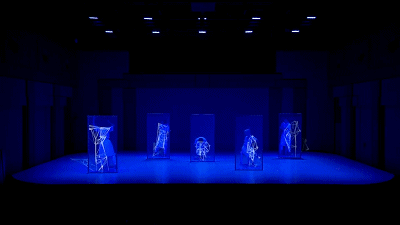 由日本設計師創(chuàng)作的“discrete figures”將表演藝術和數學結合在一起,以探索人體與計算機產生的運動之間的關系。