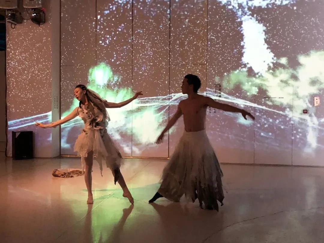 演出過程中設(shè)置了大量的引導(dǎo)性互動,通過高度儀式化的藝術(shù)性肢體動作,精心設(shè)計(jì)的環(huán)節(jié),象征寫意化的數(shù)字視覺背景,突破現(xiàn)實(shí)時空的局限和慣性思維的束縛,打破具象化的窠臼。
