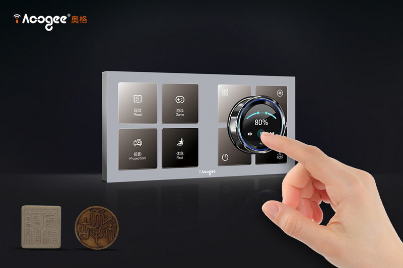 AooGee奧格璽印國風X系列色系選用當下裝飾流行百搭色-星空灰,連框設計滿足不同空間“1+2+3”組合式搭配,方程式連體無縫拼接;墻上的方圓之道,將文化智慧糅合機械美學,是一個蘊含東方人處世哲學的智能面板,在舉手投足間便展示出了富有修養(yǎng)的獨特氣質(zhì)。