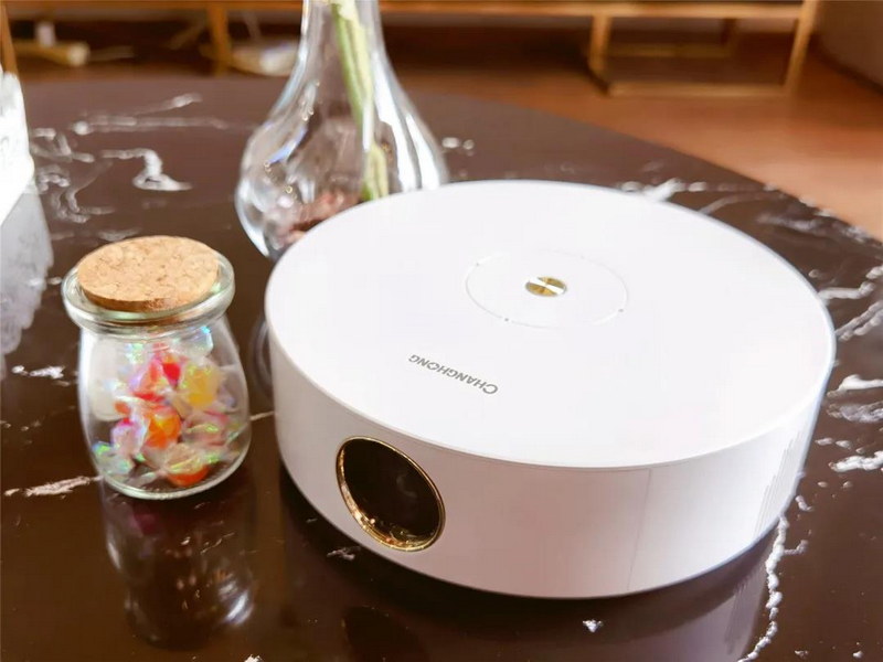 長(zhǎng)虹S2 Pro智能投影儀,圓潤小巧,直徑差不多跟一個(gè)手機(jī)一樣長(zhǎng),搬挪、收納容易;