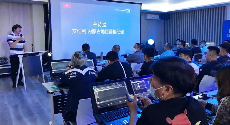 在之后的培訓(xùn)中,由安恒利燈光部產(chǎn)品推廣副經(jīng)理李怡燃介紹舞臺燈具分享及演示和燈光網(wǎng)絡(luò)系統(tǒng)的搭建與擴(kuò)展,技術(shù)支持經(jīng)理李晨陽進(jìn)行g(shù)MA3控臺培訓(xùn)。