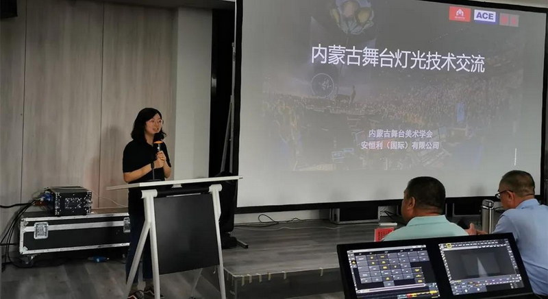 安恒利燈光部內(nèi)蒙古區(qū)域銷售經(jīng)理蘭詩溢代表安恒利公司表達(dá)對內(nèi)蒙古舞臺美術(shù)學(xué)會的支持與幫助表示感謝,對遠(yuǎn)道而來參加培訓(xùn)的老師表達(dá)感謝。