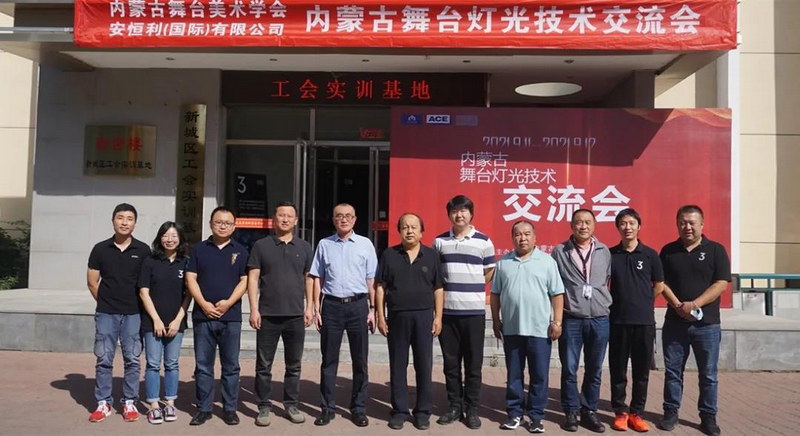 ▲內(nèi)蒙古舞臺美術(shù)學(xué)會領(lǐng)導(dǎo)和安恒利燈光部人員合影