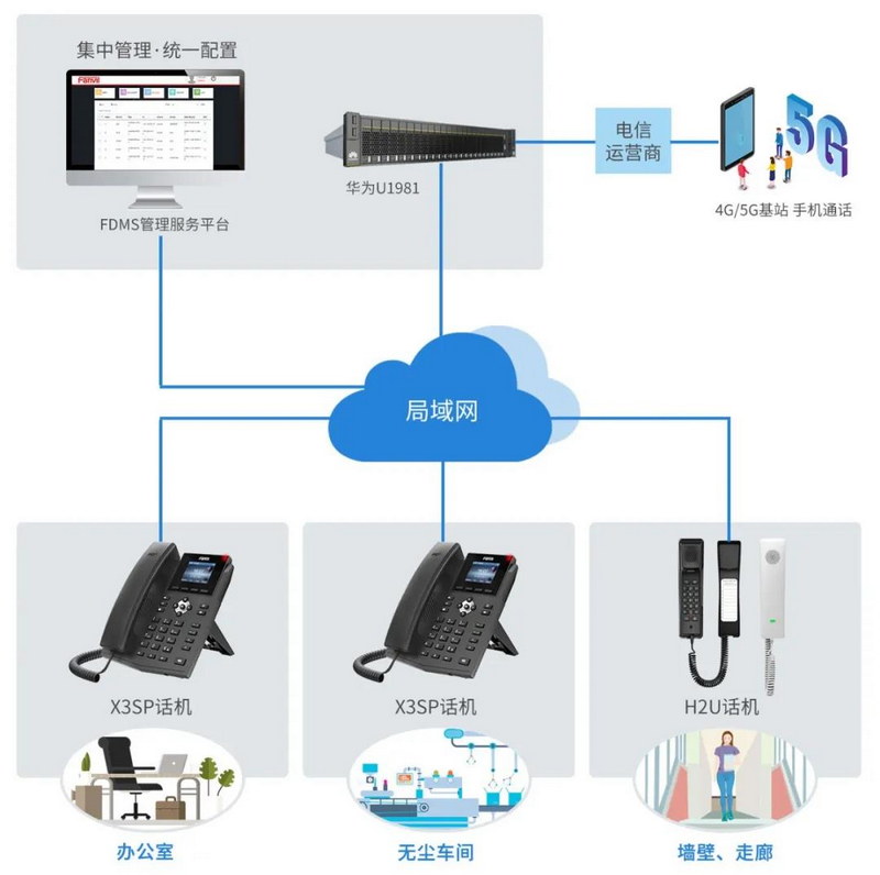 保障通信,互聯(lián)互通。在無塵車間無信號的情況下,通過方位企業(yè)辦公解決方案,實現(xiàn)X3SP辦公電話、H2U壁掛話機、WiFi手持話機等通訊設(shè)備間的互聯(lián)互通,解決車間員工與外部人員溝通難題,保持順暢溝通。
