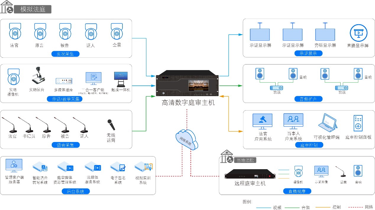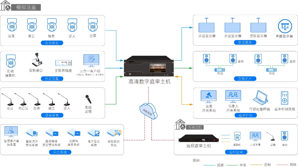 庭審媒體資源管理系統(tǒng)需采用B/S架構(gòu),功能需具備:排期管理,內(nèi)容管理,播控管理,權(quán)限管理,系統(tǒng)管理,日志管理,集中控制等;符合審理庭建設(shè)的技術(shù)要求,可對審理庭的庭審主機(jī)進(jìn)行注冊管理,對所有審理庭案件進(jìn)行自動(dòng)同步錄入;開庭對法庭音視頻信號(hào)進(jìn)行實(shí)時(shí)錄像,支持庭審專網(wǎng)的直播、點(diǎn)播、筆錄查看及下載等功能。