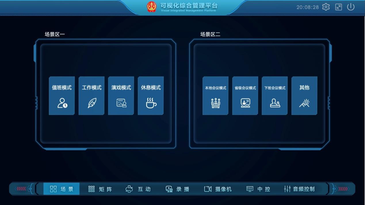 主機(jī)需具備B/S、GUI可視化集控操作界面,具備場景一鍵調(diào)用、視頻可視化預(yù)覽及拖拽切換、視頻會(huì)議及撥號(hào)呼叫管理、錄播導(dǎo)播管理、可編程中控設(shè)備管理、音頻可視化管理,同步支持C/S客戶端APP,實(shí)現(xiàn)WINDWOS和IOS等客戶端可視化管理。